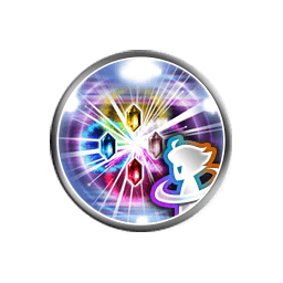 Seven single attacks (3.05 each) capped at 19999, grants [Attach Fire with Stacking]/[Attach Ice with Stacking]/[Attach Lightning with Stacking] based on entry element damage, [Damage Cap +10000], [Crystal Force Mode] and [Crystal Force Mode: Matoya] to the user |