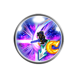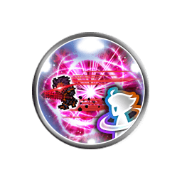 Seven single attacks (0.90 each) capped at 19999, grants [Critical Damage +50% 3]/[Critical Damage +50%] to all allies if 0-3/4+ FFII allies are alive, grants [Attach Dark with Stacking], [Damage Cap +10000], [Crystal Force Mode] and [Crystal Force Mode: Leon] to the user |