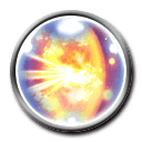 Seven single attacks (0.90 each) capped at 19999, grants [Attach Fire with Stacking], [Damage Cap +10000], [Crystal Force Mode], and [Crystal Force Mode: Refia] to the user, grants [PHY +30% Boost 3] to the user/[PHY +30% Boost (15s)] to all allies with 0-3/4+ III or Monk allies