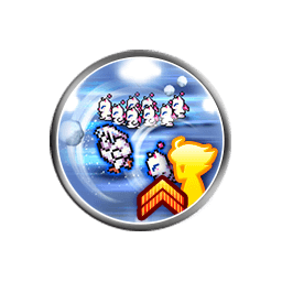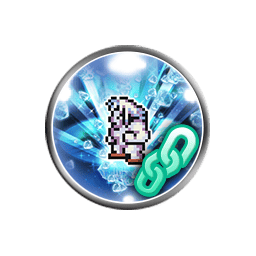 Fifteen single attacks (0.60 each), grants [Attach Ice 3 with Stacking], [Synchro Mode], [Damage Cap +10000], [Ability Berserk], [Me Join You Mode] and [Intense Cold Follow-Up] to the user, grants Boss's Tip +1 to the user if 2+ FF6 allies are alive, grants Boss's Tip +1 if Mog is alive |
