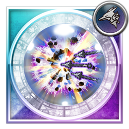 Fifteen single ranged attacks (0.60 each), grants [Career Change Mode III (Ice, Earth, Water)], [Synchro Mode], [Damage Cap +10000] and [100% Critical 3] to the user, grants [100% Critical 3] to Laguna and Kiros if they are alive, grants [Critical Damage +50% 3] to the user, Laguna and Kiros if Laguna and Kiros are alive |