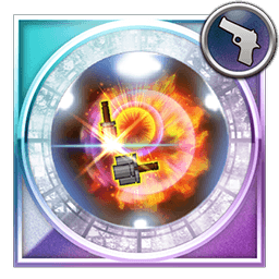 Seven single ranged attacks (0.90 each) capped at 19999, grants [Attach Fire with Stacking], [Damage Cap +10000], [Dual Awoken Fire Mode I (Balthier)] and [Fire Resonance +5% Boost] to the user |