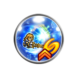 Crystal Force I/II: 6 single-target Holy/NE physical attacks at Cap Break Level 1, Instant Cast, [Cap Break Level 1, Quick Cast, PHY Damage +30% & 50% DEF/RES Pierce] for 2 turns & Quick ATB 1 to user |